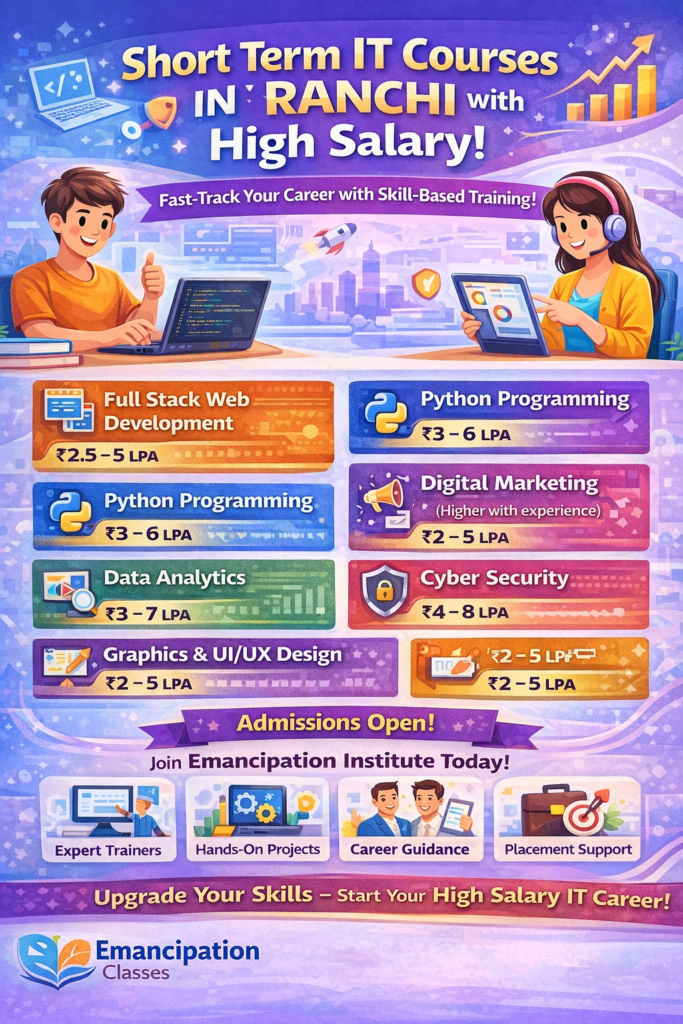 If you are searching for reliable short term IT courses in Ranchi, Emancipation Institute offers industry-oriented programs designed for career growth.
