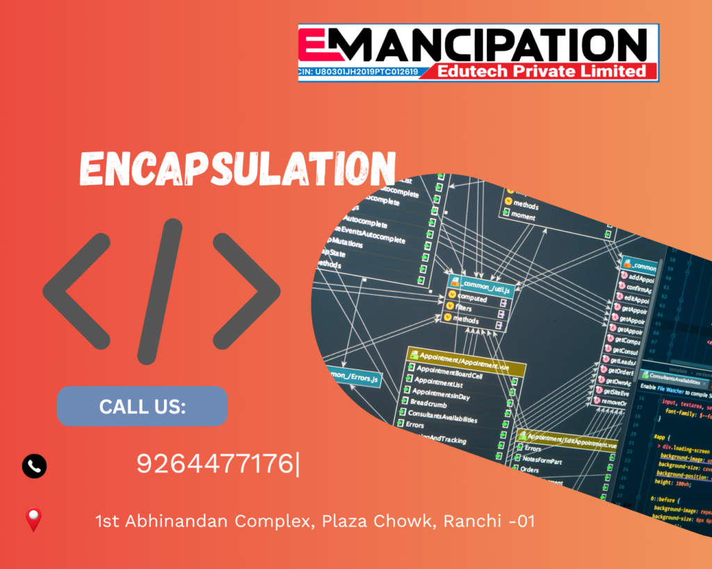 In simple terms, encapsulation means wrapping data and methods into a single unit and restricting direct access to some components. This helps protect data from unwanted modification.