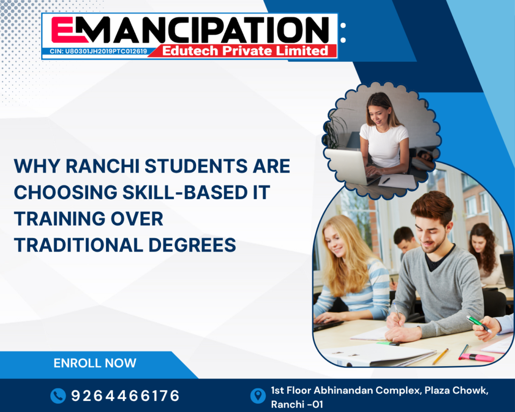 IT landscape, the focus is rapidly shifting from traditional degrees to skill-based learning. Students in Ranchi are increasingly opting for courses in Python, Data Analytics, Artificial Intelligence (AI), and other in-demand technologies. The reason is simple: employers now value practical skills and hands-on experience more than just academic qualifications.