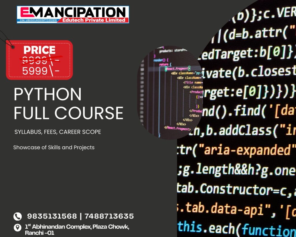 In today’s technology-driven world, programming skills are becoming essential for students who want to build a successful career in the IT industry. Among all programming languages, Python has gained massive popularity because of its simplicity, flexibility, and wide range of applications. From web development and data science to artificial intelligence and automation, Python is used everywhere. If you are a student in Ranchi looking to start your programming journey, enrolling in a Python Full Course at EEPL Classroom (Emancipation) can be the perfect step toward a bright future.